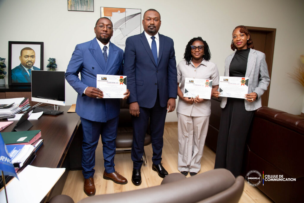 Trois agents de la Direction des Recettes Non Fiscales du Lualaba (DRNOFLU) ont récemment eu l’honneur de présenter leurs certificats au Directeur Provincial, Monsieur Georges TSHATA MBOV, à l’issue d’une formation spécialisée en fiscalité minière et douanière des entreprises en République Démocratique du Congo.